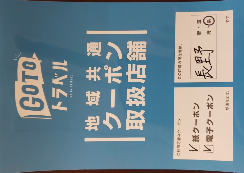 10月1日から始まったGO TO トラベルの地域共通クーポンをTSUMUGI CAFEでも取り扱います。